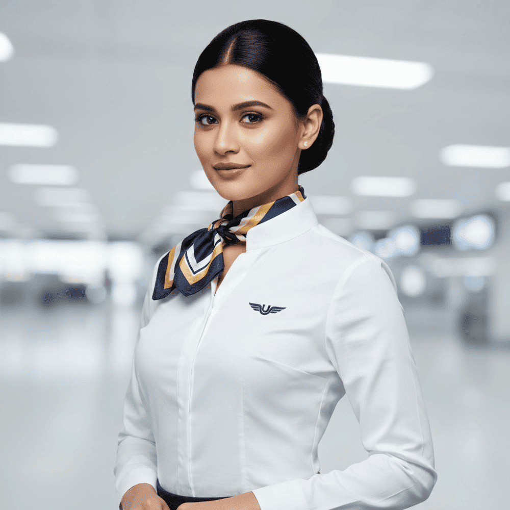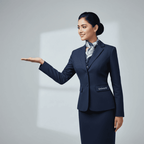 We offer complete customization options including fabric selection, colour coordination with airline branding, logo embroidery, scarf pairings, and precise fit tailoring. Attention to detail — from collar structure to sleeve finish — ensures a refined and graceful look that aligns perfectly with your airline’s identity. With Uniworld Uniforms, your cabin crew carries your brand in the skies with style, comfort, and confidence.
